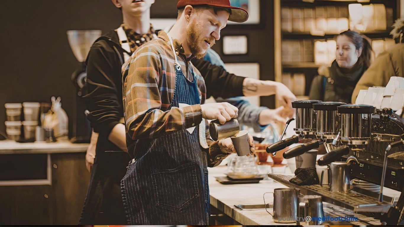 The café environment combines extended standing with frequent fast-paced movement on hard surfaces — a combination that places consistent and varied stress on the feet throughout every shift. Common contributing factors include: